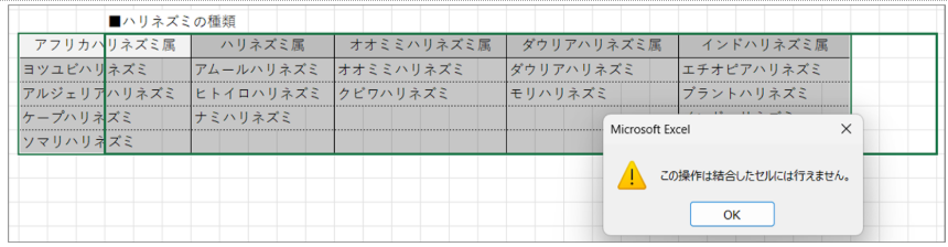 作成した後に表を移動させようとしたら下図のようなエラーが起きることがあります。